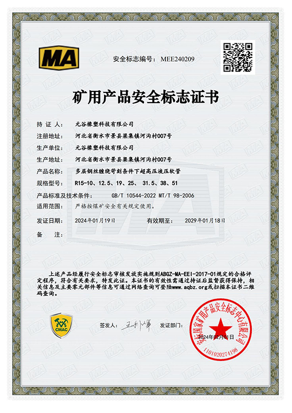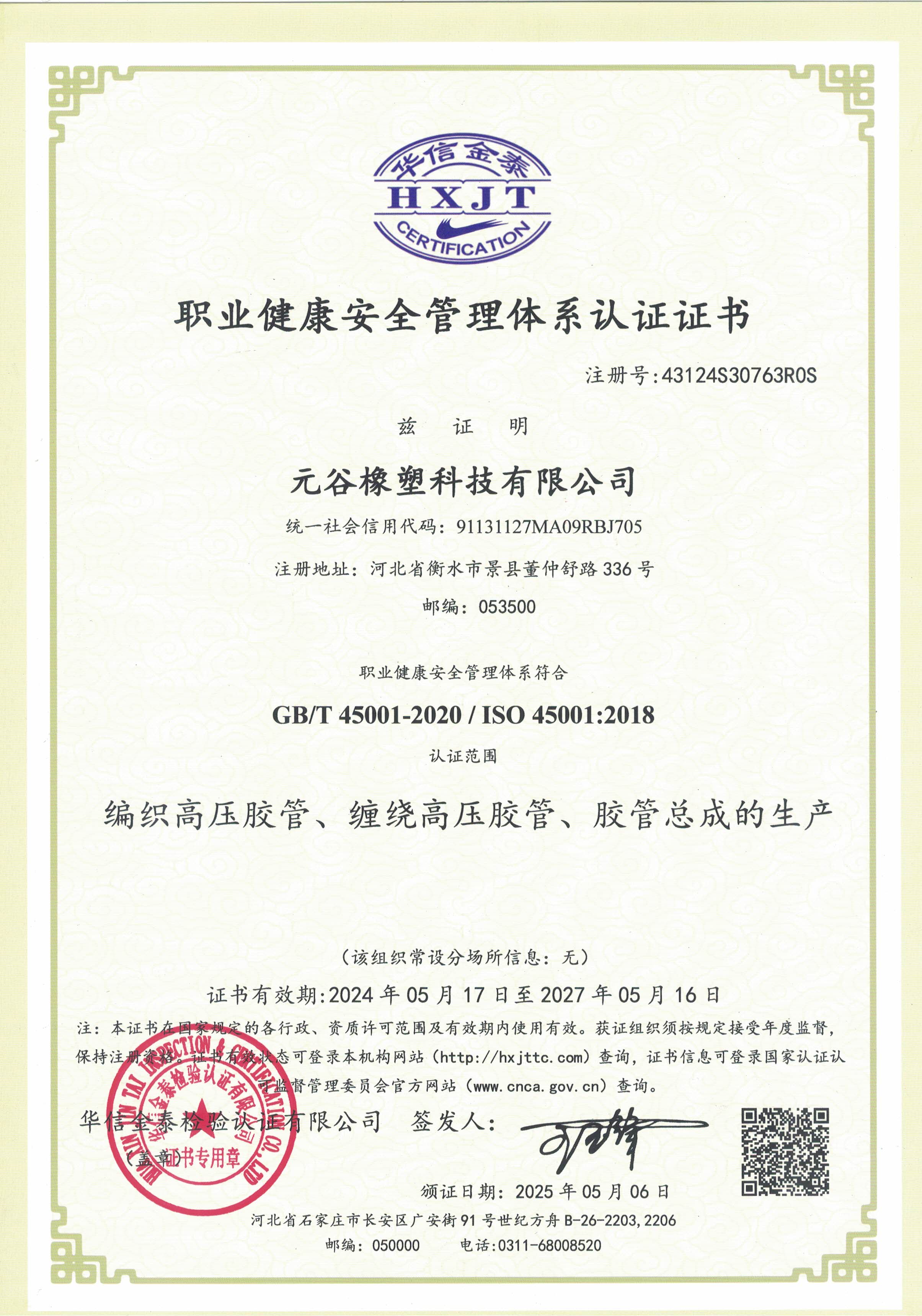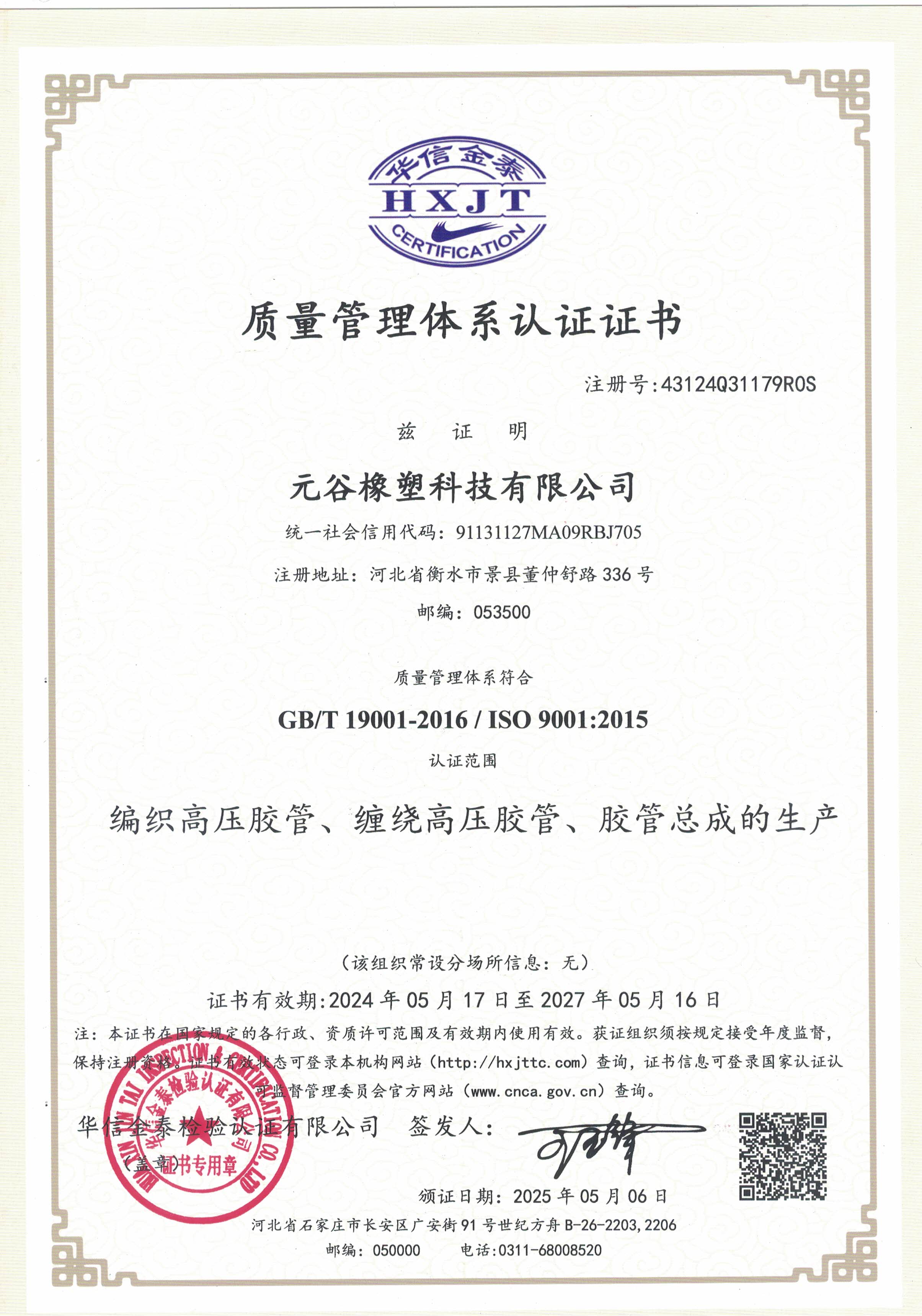 元谷橡塑科技有限公司位于河北省東南部的千年古城景州、東倚津福線、南靠石德鐵路、公路發達,交通極為便利。本廠專業精工 制造鋼絲編織、纏繞高壓、超高壓膠管、氣動管、噴砂管、吹氧管、鉆探管、酒機配件及不銹鋼金屬軟管、產品承受壓力高、彎曲半徑小、 搞疲勞性能強、使用壽命 長、廣泛用于冶金連鑄、石油鉆探、工程機械、礦山采掘及各類液壓機械。