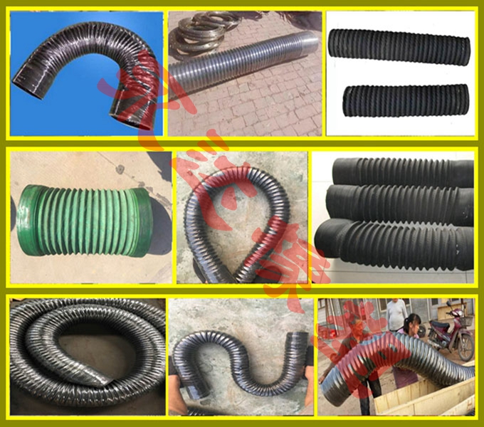 夾布吸引膠管是由內膠層,多層夾布纏繞層,螺旋鋼絲增強層和外膠層組成。