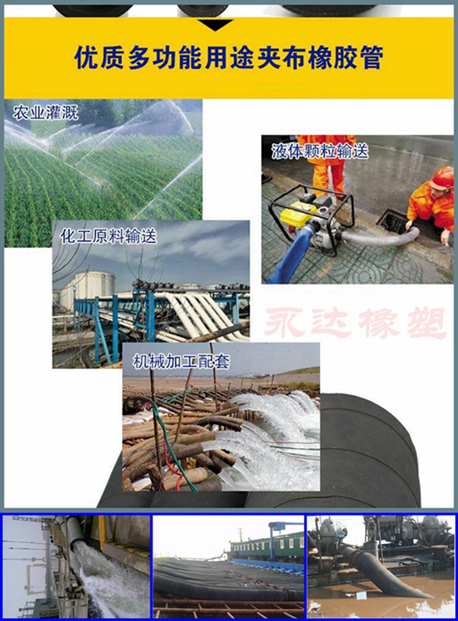 性能特征:耐磨、耐老化、耐臭氧,管體承壓高,柔軟,輕便,彎曲性能好,變形小,外表美觀。
